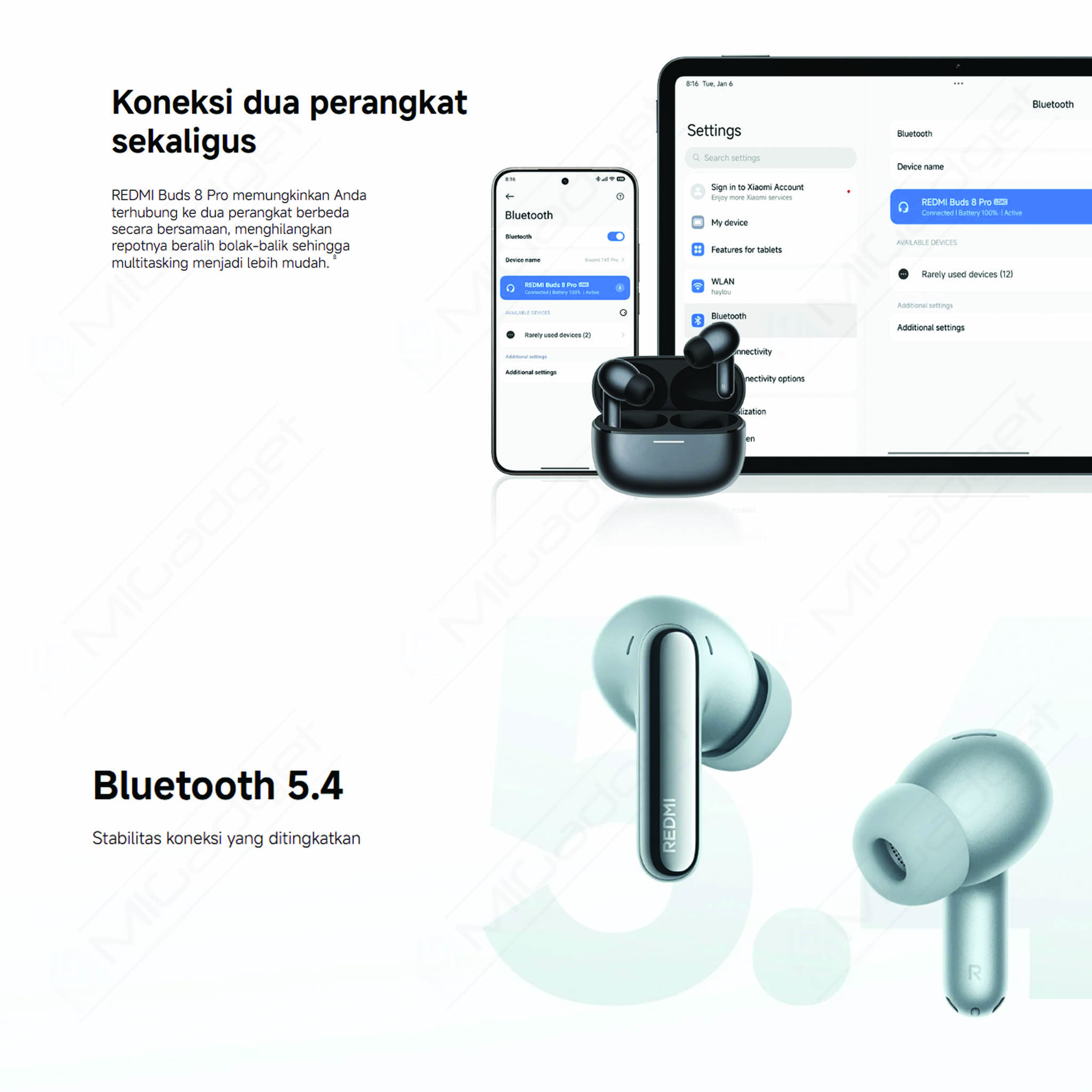 Bluetooth 5.4 (lebih stabil dan efisien)