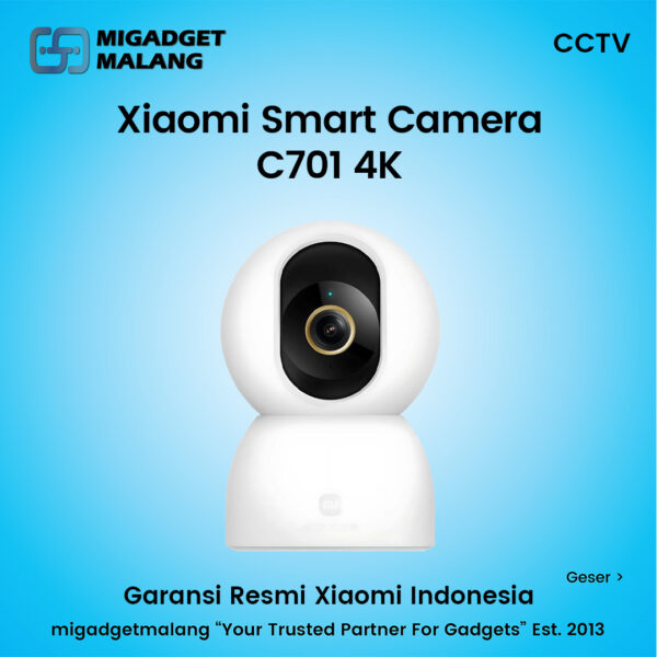 Xiaomi Smart Camera C701 4K UHD Kamera CCTV Keamanan Rumah Night Vision AI Tracking WiFi 6 Fitur Utama Xiaomi Smart Camera C701: Resolusi Ultra Jernih 4K UHD Kamera 8MP dengan lensa f/1.6 dan 6P optik untuk gambar super tajam. AI Pintar untuk Keamanan Rumah Deteksi dan pelacakan manusia, hewan peliharaan, serta tangisan bayi dengan pemrosesan lokal. Night Vision 940nm Tanpa Cahaya Merah Penglihatan malam sejauh 10 meter, tetap jernih tanpa mengganggu tidur. HDR Otomatis Menangkap detail lebih baik di area terang dan gelap. Wi-Fi 6 Dual-Band (2,4GHz & 5GHz) Koneksi lebih stabil, cepat, dan minim latensi. Perlindungan Privasi 4 Lapis Termasuk penutup lensa fisik, enkripsi data, dan komputasi AI lokal. Putar Otomatis 360° Horizontal & 109° Vertikal Pemantauan fleksibel dengan kendali jarak jauh. Panggilan Suara Dua Arah Mikrofon peredam bising + speaker besar untuk komunikasi jernih. Kontrol Suara Kompatibel dengan Google Assistant dan Amazon Alexa. Penyimpanan Fleksibel Mendukung microSD (8–256 GB), penyimpanan cloud, dan jaringan (NAS). Instalasi Mudah Hanya 3 langkah melalui aplikasi Xiaomi Home. Spesifikasi Nama: Xiaomi Smart Camera C701 Model: MJSXJ27CM Input: 5 V ⎓ 2 A Dimensi item: 79 × 79 × 119 mm Resolusi: 3840 × 2160 Codec video: H.265 Suhu operasional: -10C hingga 40C Konektivitas nirkabel: Wi-Fi IEEE 802.11 a/b/g/n/ac/ax 2,4 GHz / 5 GHz, Bluetooth 5.4 Kompatibel dengan: Android™ 8 & iOS 12.0 atau yang lebih baru Penyimpanan: Kartu microSD (8 GB hingga 256 GB) Isi Kemasan Xiaomi Smart Camera C701 Adaptor daya Kabel pengisian daya (2 meter) Stiker template pemasangan Kit pemasangan di dinding (Dudukan x1, Sumbat dinding x2, Sekrup x2) Pemberitahuan garansi Panduan pengguna