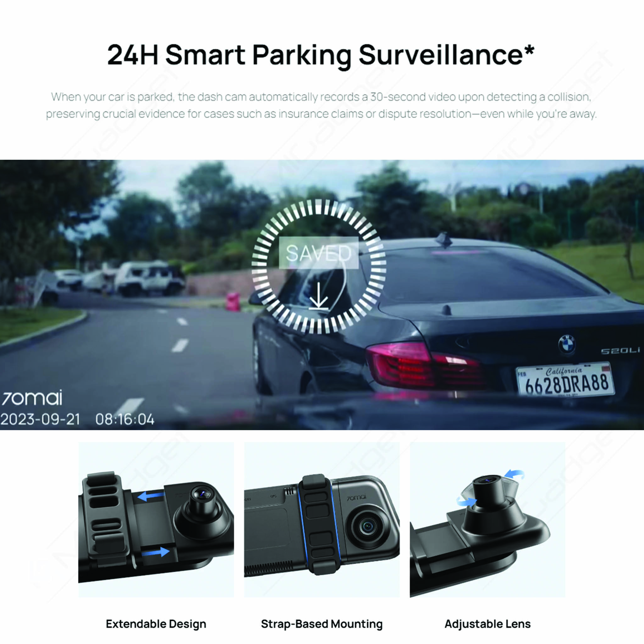 24H Parking Surveillance: Rekam otomatis saat ada benturan atau dengan mode time-lapse (butuh hardwire kit).