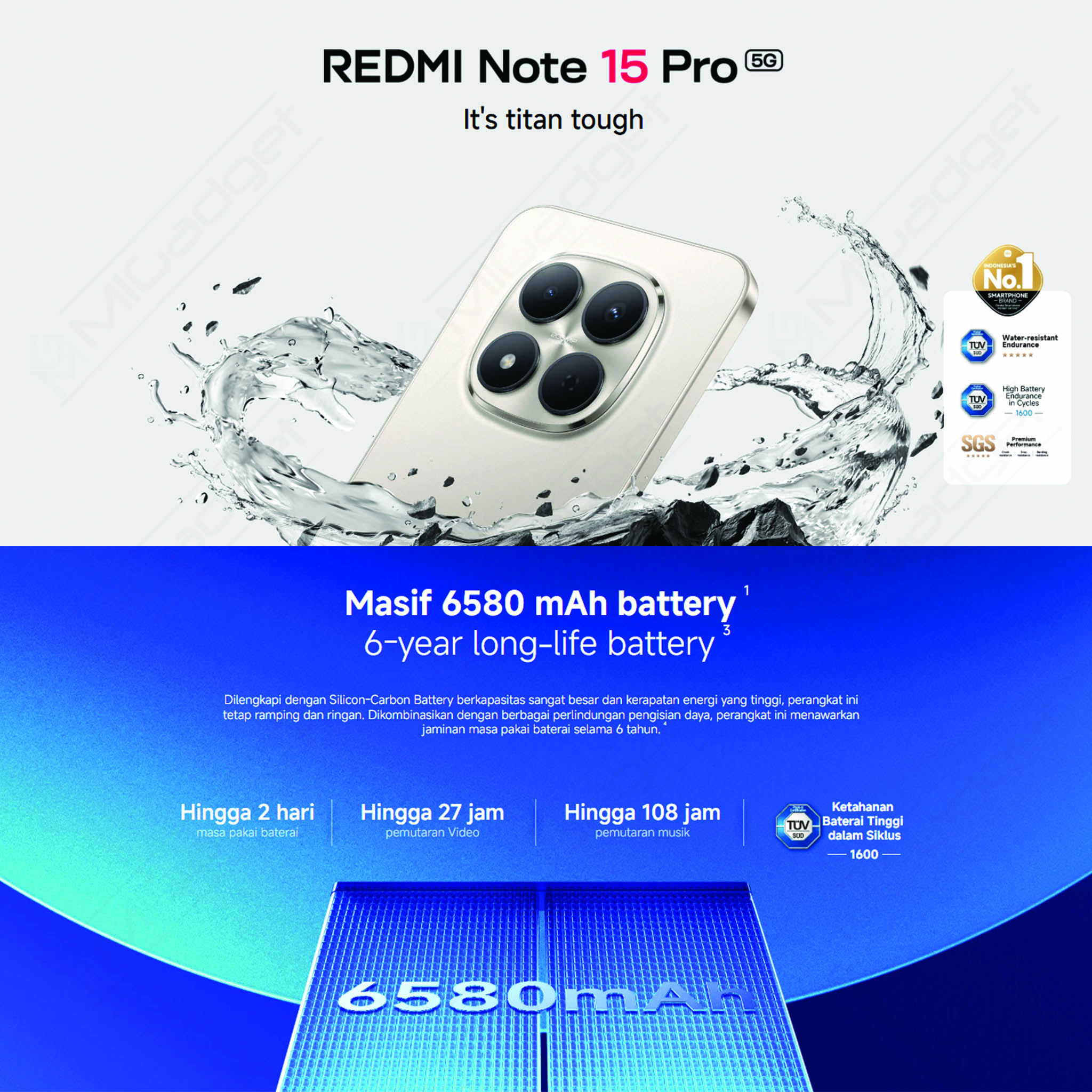 Redmi Note 15 Pro 5G 200MP AMOLED 1.5K 120Hz 6580mAh 45W IP69