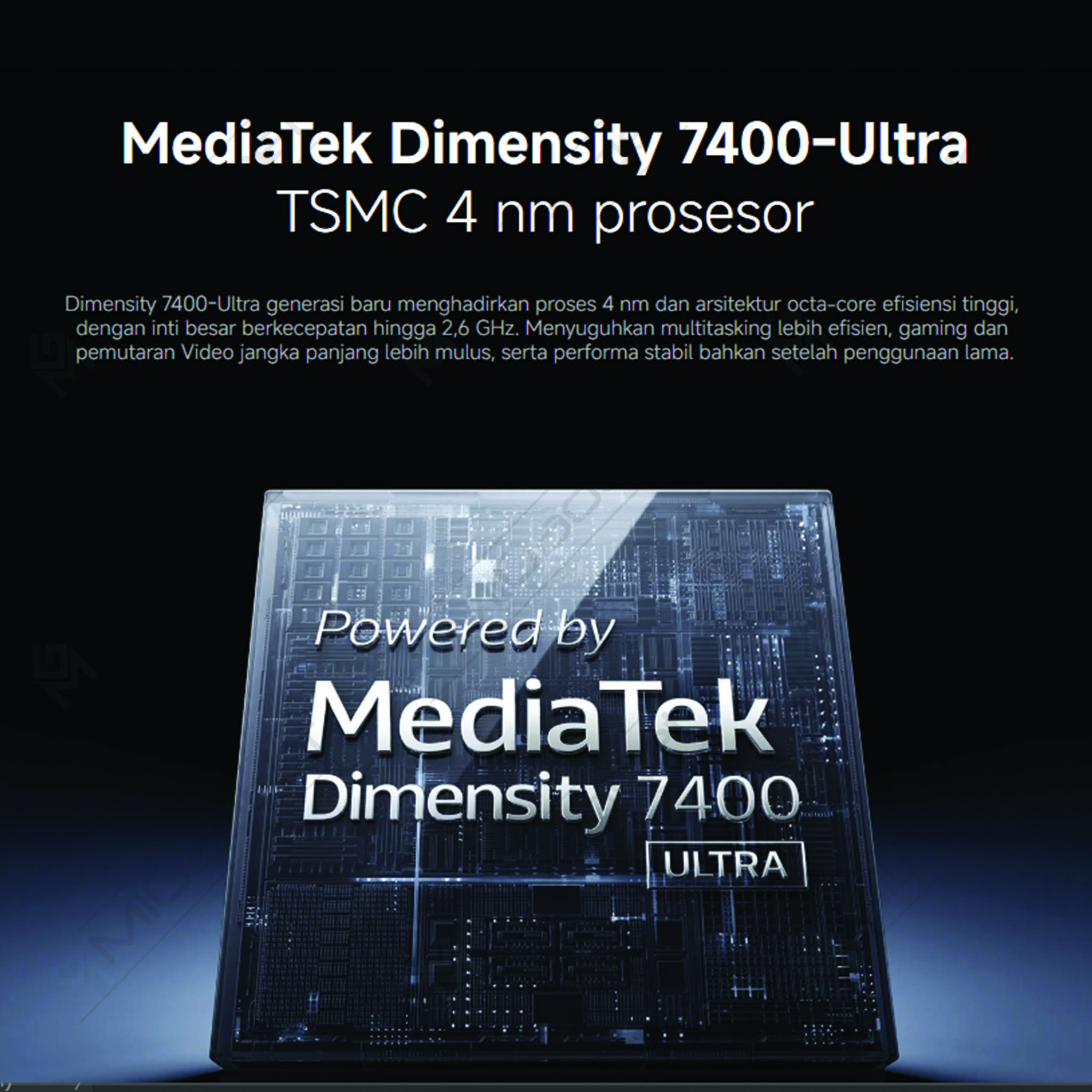 MediaTek Dimensity 7400-Ultra (4 nm), multitasking dan gaming stabil.