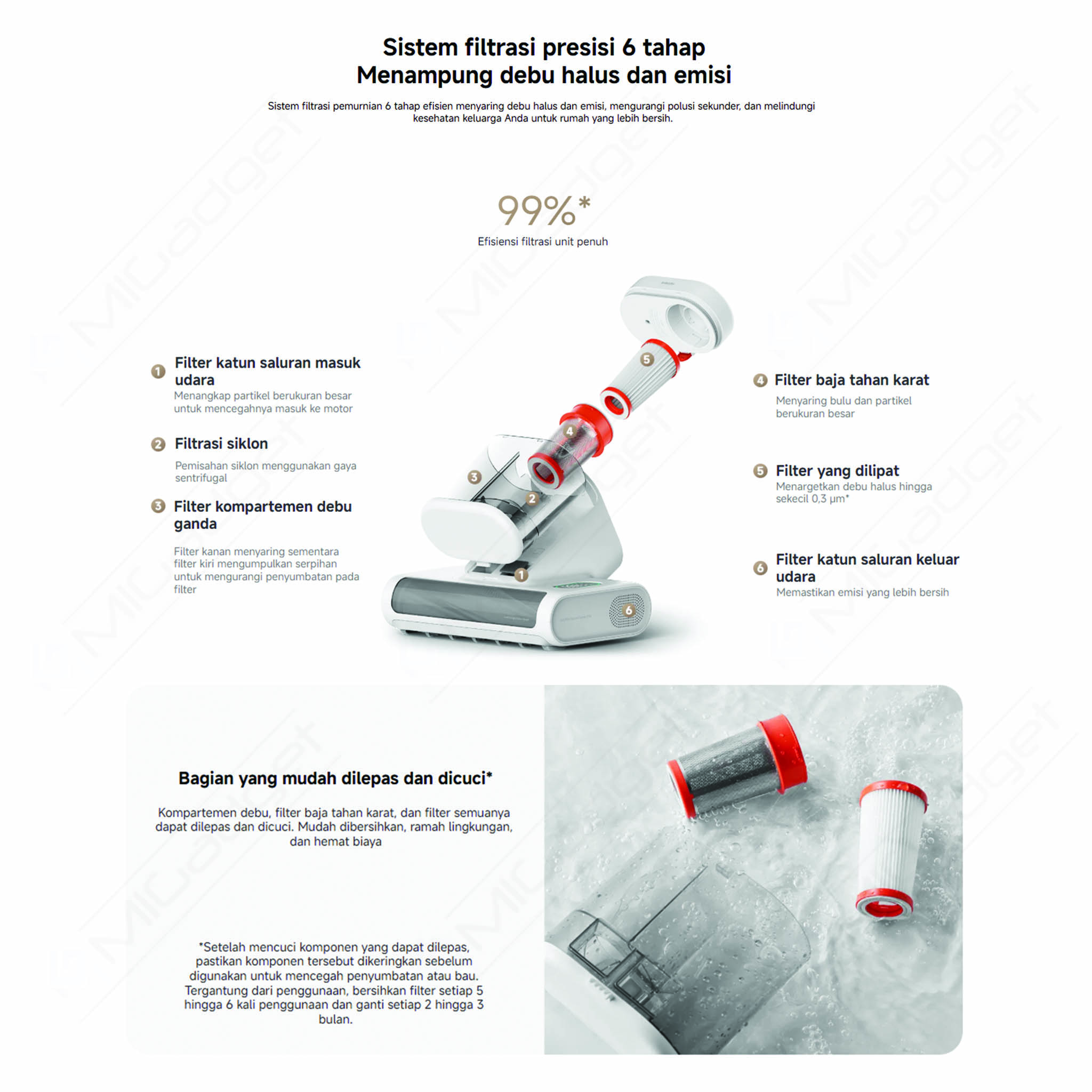 Efisiensi filtrasi: hingga 99%