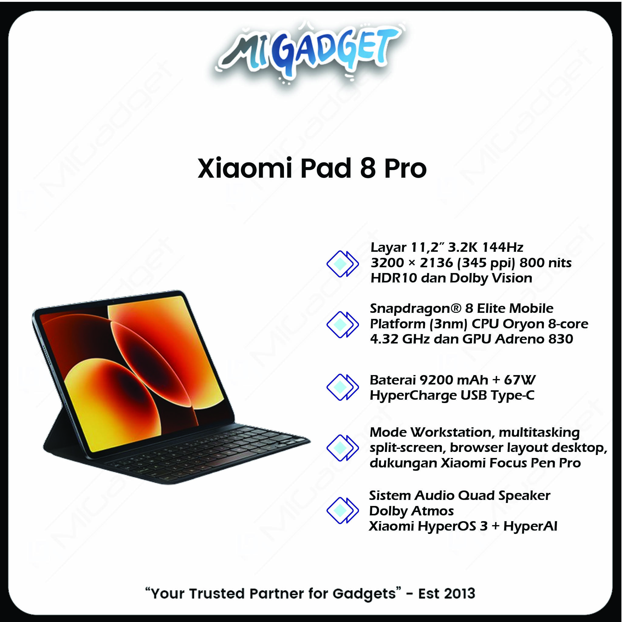 Xiaomi Pad 8 Pro Tablet 11.2″ 3.2K 144Hz Snapdragon 8 Elite 9200mAh 67W HyperCharge WiFi 7