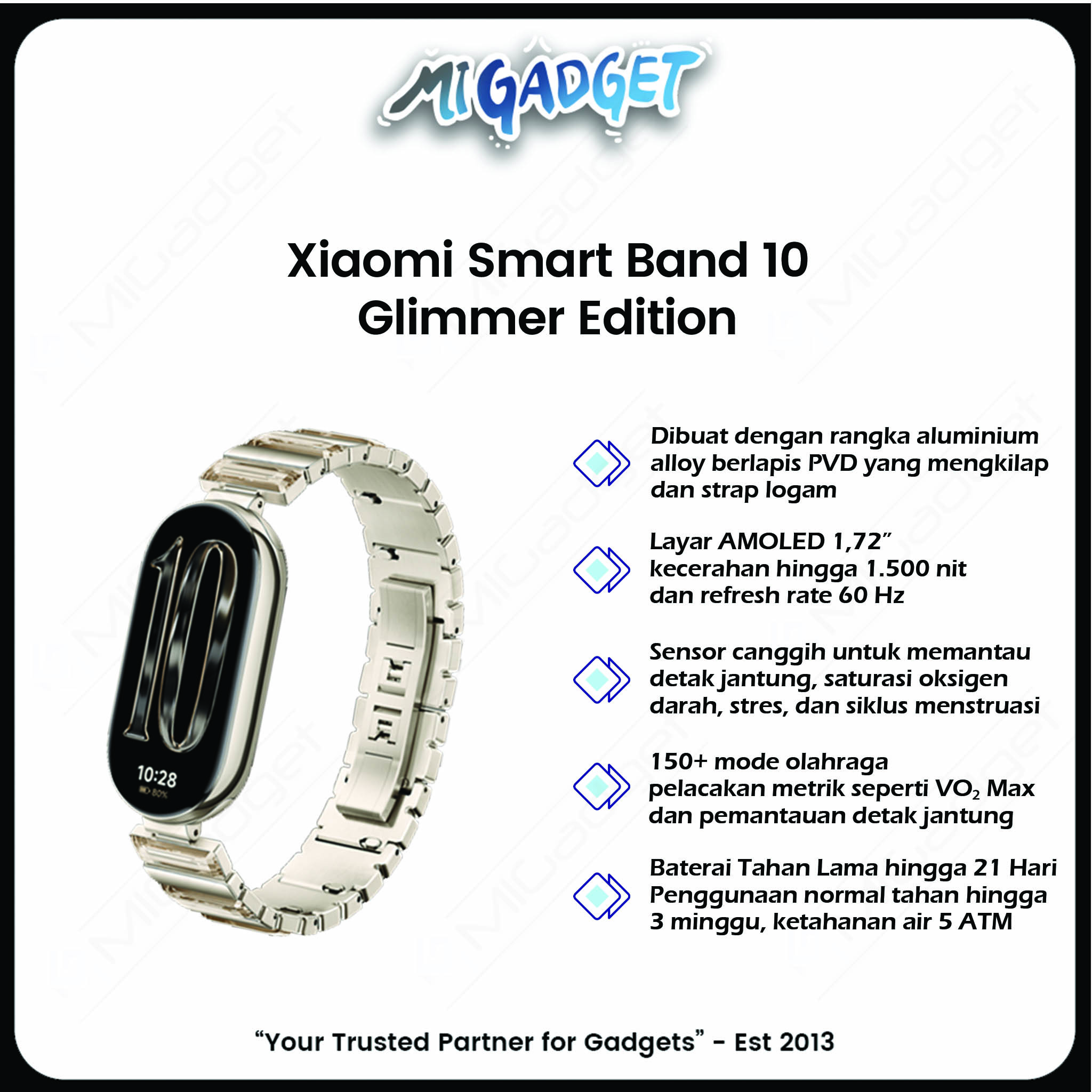 Xiaomi Smart Mi Band 10 Glimmer Edition Aluminium Alloy AMOLED Tahan 21 Hari 5 ATM