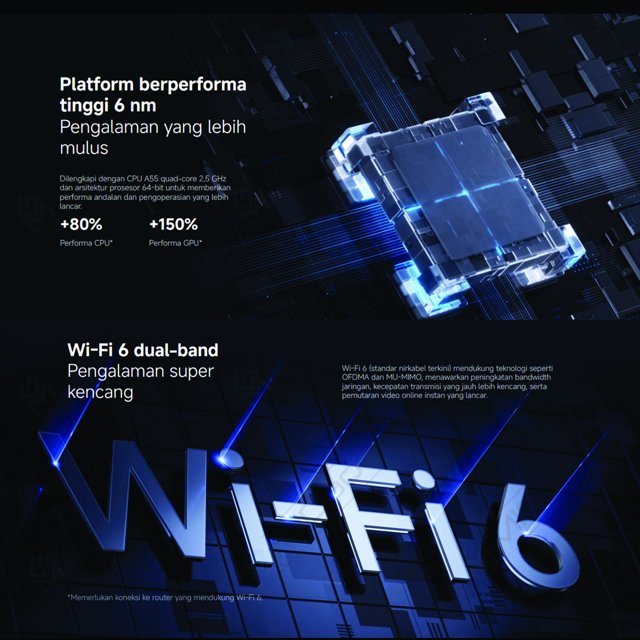 Prosesor: Quad-core Cortex-A55, hingga 2.5 GHz (arsitektur 64-bit, fabrikasi 6 nm)
