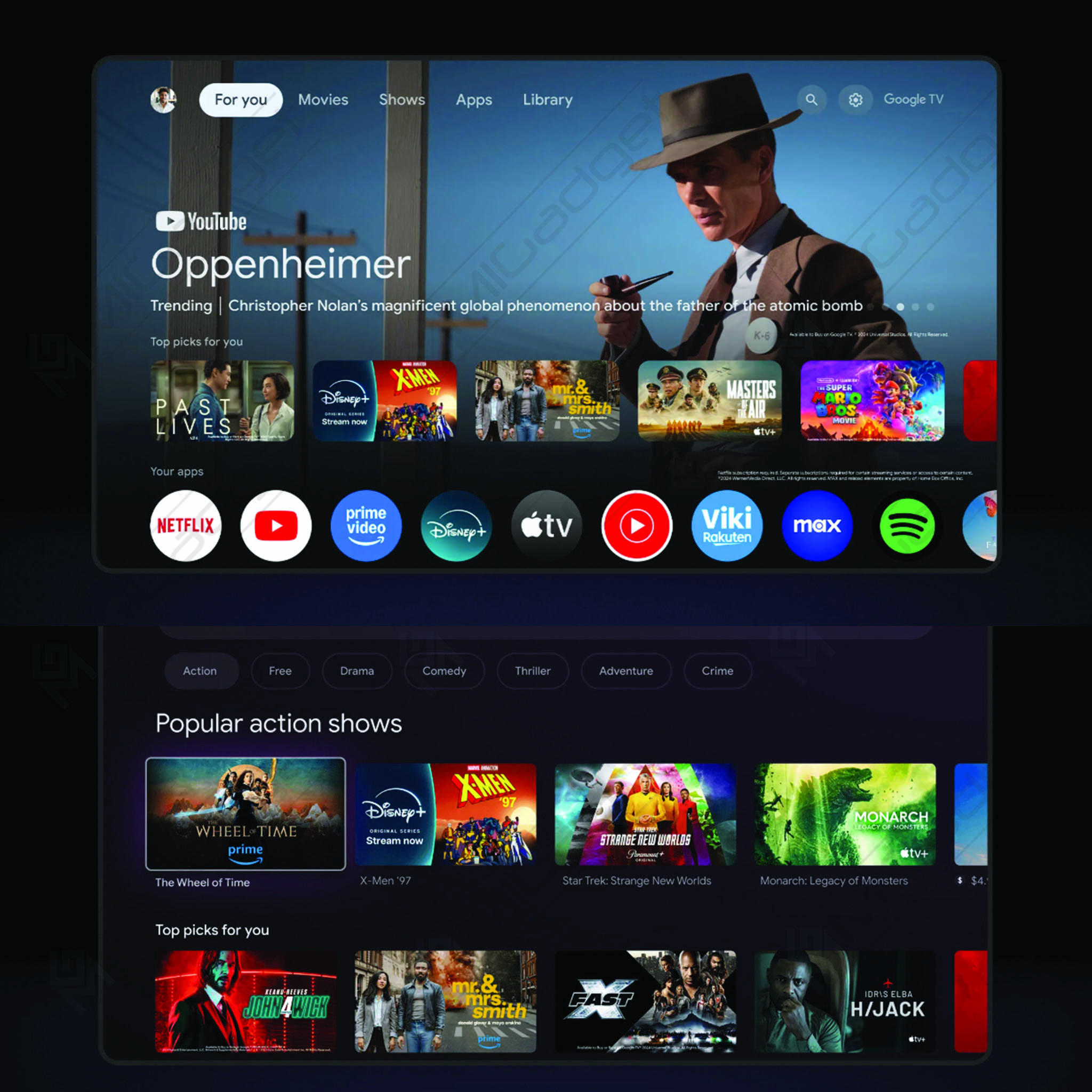 Platform Konten: Google TV (akses >10.000 aplikasi & ratusan channel gratis)